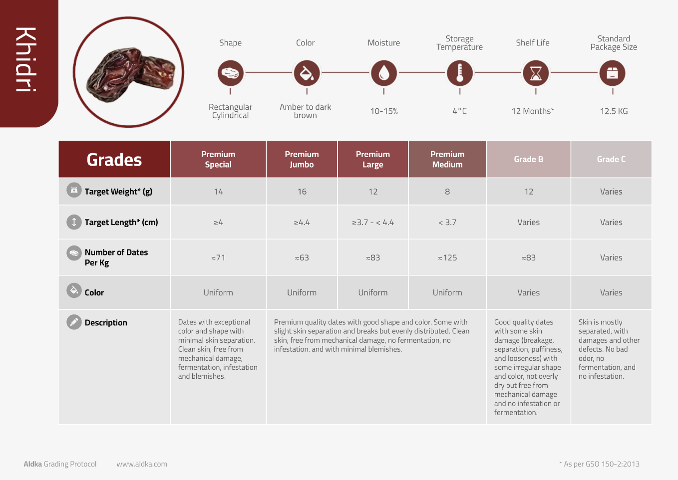 Knowing that skin separation and breakage is inevitable; the resulting imperfections are evenly distributed and kept at a minimum. As a result, all our Premium Dates demonstrate skin that is clean and free from mechanical damage, fermentation and even blemishes.